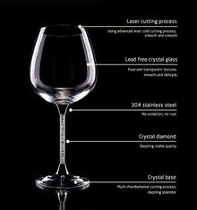 Crystal Wine Glasses Diamond Filled Stem, White and Red Wine, With Laser Cut Diamond Base Large 18 Ounces