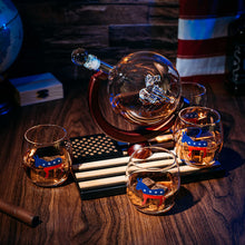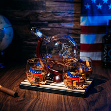 Democratic Party Wine & Whiskey Decanter Set, Proud Democrat Vote Blue Election Decor, Washington DC Politics Gift, 750ml With US Flag and 4 Glasses - Donkey Logo, DNC Gifts, Senate, House & President
