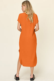 Double Take Full Size Round Neck Short Sleeve Slit Dress Stylish & Comfortable Casual Dress