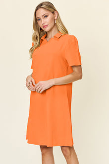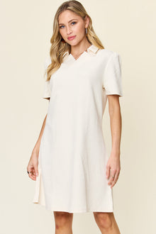 Double Take Full Size Texture Collared Neck Short Sleeve Dress Textured Dress For Women