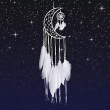 Dream Catcher Wall Decor with White Feathers Indian Style Dream-catcher Moon Handmade Wind Chimes Wall Ornament Girls Room Decoration Feather Dream Catcher For Kids Women Wedding Bohemian Wall Decor