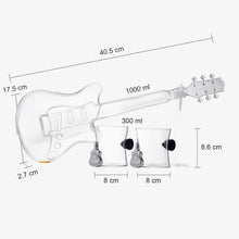 - The Electric Guitar Decanter Set is a thoughtful gift for guitarists, musicians, and anyone with a passion for rock 'n' roll. With its unique design, generous capacity, and accompanying whiskey glasses, stand, and metal case, this set is a tribute to the spirit of music and a stylish addition to your home bar. Raise your glass, toast to your love for music, and enjoy your favorite drinks in style with this extraordinary decanter set.