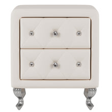 Elegant PU bedside table with 2 drawers and crystal handles, storage with metal legs - white