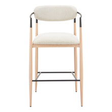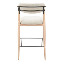 Designed for both style and functionality, the Equinox Barstool in Oyster Gray & Natural is crafted from textured 100% polyester fabric, powder coated steel, and faux wood steel. Its modern design is perfect for hospitality use, enhancing any space with elegance and practicality