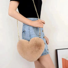 Fashion Women's Heart Shaped Handbags Cute Faux Fur Crossbody Bags Lady Soft Plush Chain Shoulder Bag Shopper Totes