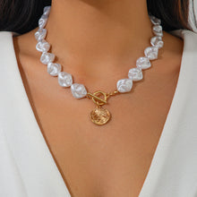 Fashionable irregular shaped pearl necklace, light luxury style, metallic feeling, collarbone chain set