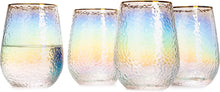 Festive Lustered Iridescent Stemless Wine & Water Glasses - Set of 4-100% Glass 15oz Mouthblown Colorful Glasses - Anniversaries, Birthday Gift, Cocktail Party Radiance - Water, Whiskey, Juice, Gift