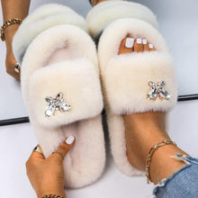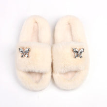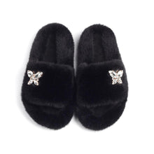 Fluffy Slippers Rhinestone Butterfly Faux Fur Slides Women Sandals Platform Flip Flops Crystal Indoor Slippers Faux Fur Slippers Comfy Open Toe Two Slides Lining And Rubber Sole