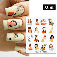 French Line Nail Water Decal Flower Marble Leaf Girl Stickers on Nails Water Ink Transfer Slider Nail Stickers Decor Kids Nails Art Decoration Nail Strips Shiny French Tip Guides Stickers French Nail Stickers Form Fringe Guides