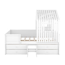 Full Size House Low Loft Bed with Four Drawers,White