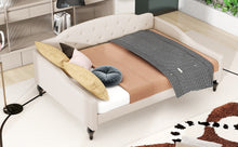 This full-size daybed is the perfect addition to any living space. The fabric selected for the collection features linen designed to last. Crafted with plywood frame with wood supports, this dapper design strikes a glamourous wingback silhouette padded with foam fill and draped in lush upholstery with a deep button tufting. This daybed is an ideal choice for a living room, den, office, or any living space. The design, construction, and overall functionality are certain to grace your interior with added charm.
