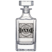 - The Dad Whiskey Decanter Set with Two Glasses is a thoughtful and practical gift for the fathers in your life. This set includes a 730 mL decanter and two 10-ounce glasses, each featuring a decorative "Dad" design on the front. It's an ideal gift for Father's Day or any occasion to show appreciation for dads.
