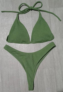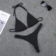 Girls Swimming Suits Bikini Small Cup Women Two Pieces Knitting Thong Bikinis Summer Spaghetti Strap Top And Bottoms Swimsuit Swimwear High Cut Style Beach Bikini Solid Black/White Micro Swim Suits Thong Bikinis