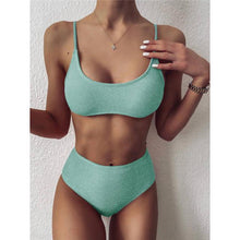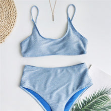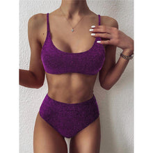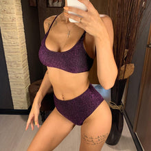 Glitter Sparkling Female Swimsuit High Waist Bikini Women's High Waist Bikinis Party Glitter Scoop Neck Crop Top Swimsuits Two Piece Bathing Suit Women Swimwear Two-pieces Bikini Set Summer Swim Suit