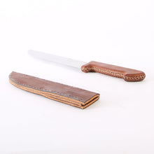 - 8" stainless steel kitchen knife and hand-tooled leather sheath