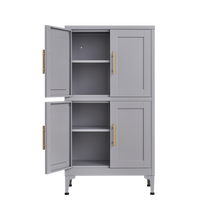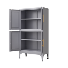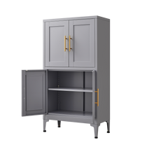 Grey metal kitchen storage cabinet, kitchen pantry storage cabinet with door and shelf, adjustable leveling feet