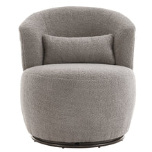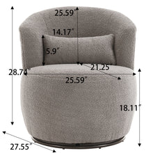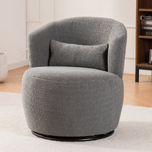 Grey Plush Swivel Accent Chair - Contemporary Round Armchair with 360° Rotation and Metal Base for Living Room Elegance