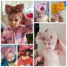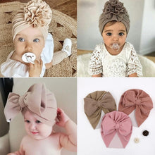 Handamde Elegant Baby Hats for Girls Big Bow Turban Hat Newborn Baby Beanie Cap Solid Color Style