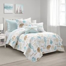 Star fish, seahorses and reefs combine to create a stunning reversible quilt set perfect for your beach home or your beach-themed bedroom. The Harbor Life Reversible Quilt Set features soft colors to create a peaceful atmosphere perfect for sweet dreaming.