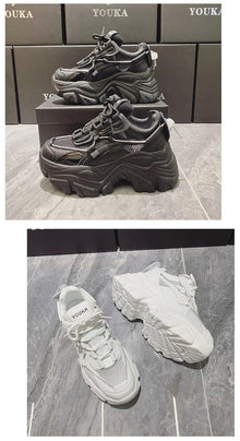 High Quality Chunky Sneakers Womens Platform Fashion Breathable Height Increased Thick Bottom Trainers High White Fashion Thick Soled Sports Walking Sneakers