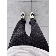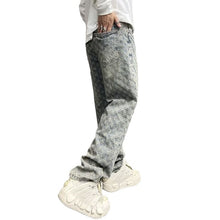 High Street Hip Hop Trousers, Trendy Brand Cool and Handsome Jacquard Full Print Jeans for Men, American Style Vibe Straight Leg Pants