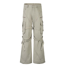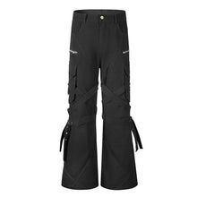 High Street Style Multi-Pocket Workwear Flared Trousers with Belt Design for Men