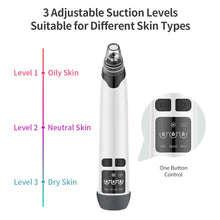 2. Built-in 3 adjustable suction levels and 4 interchangeable suction heads for free adjustment, widely suit different skin types and work on different skin areas, fully meet your custom pores cleaning demands.