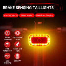 Intelligent induction brake bicycle taillight road mountain bike charging warning riding equipment square red taillight