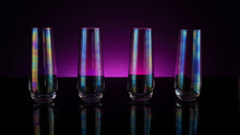 - Once sunlight (or candle-light) hits these elegant wine glasses, you will be taken through a magical passage filled positive energy- bringing an an uplift to your mood. No matter what angle, looking into this glass will present a beautiful combination of colors with an added luminous shine, making each sip more enjoyable.
