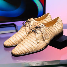The LACIO is our fully wrapped genuine caiman crocodile dress derby's featuring tasseled laces and a polished hand finish that makes the crocodile texture pop. Dress these up with your favorite jeans or slacks for a stunning look.