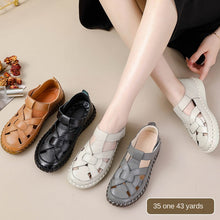 Leather perforated shoes with hollowed out toe caps for women soft soled non slip flat sandals for women