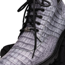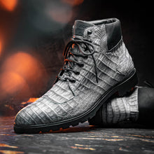 The LEONI is our rugged-luxury boot, handcrafted from genuine caiman belly leather for a bold, modern profile. Designed for men who want exotic character with everyday versatility, this lace-up boot features clean caiman belly panels, reinforced construction, and a padded collar that adds comfort without sacrificing attitude. Finished with a durable rubber lug sole and full leather lining, the LEONI delivers confident style and reliable traction whether you dress it up with tailored looks or down with denim.