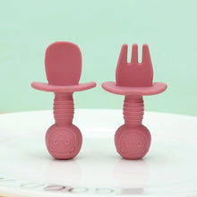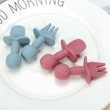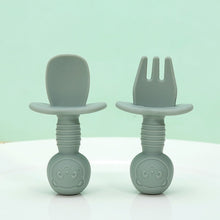 Licking Spoon for Baby Learning to Eat Training Spoon Short Handle Baby Supplementary Food Silicone Soft Spoon Fork Spoon Tableware 2-piece Set