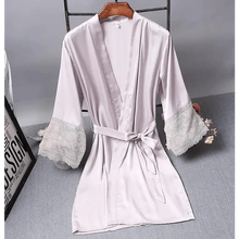 - SATIN LACE TRIM ROBES- Robe With Lace Trim Design,Outside Removable Belt.The Beautiful Silk Satin Robe Make You Feel Soft, Unique And Elegant