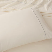 A delicate embroidered trim adds a designer touch, offered in both tone-on-tone and contrasting finishes for effortless styling. The minimalist design layers beautifully with statement bedding or creates a serene, refined look on its own.