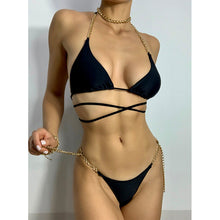 Luxury Black Bikini Set Chain Swimsuit Female Black Swimwear Women Summer Bathing Suit Women V-Wired Underwire Push Up High Cut Bikini Set Two Pieces Bathing Suit