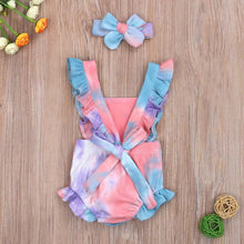 Luxury Modern New Printed Colorful Toddler Girls Rompers With Headband Ruffles Short Sleeve Printed Backless Jumpsuits