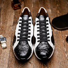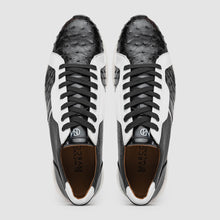The LYON II is our street inspired combination genuine ostrich quill and classic calfskin fashion sneaker rocking a minimal casual silhouette with a two tone hand painted finish. Dress these up with your favorite jeans, slacks, or shorts for a striking look.