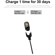 * Built-in 105mAh battery, Charging time about 1.5H, normal use time about 10 days, standby time about 20 days