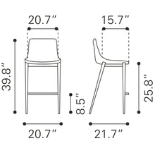 High design meets everyday casual. This handsome counter stool with its slim profile pulls up perfectly to the bar. Its super comfortable curved seat is covered in black faux leather with dramatic stitching. Matte brown Faux Wood legs are complete with protective plastic feet to keep your floors scratch-free.