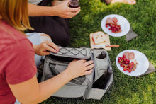 The Malibu PT Frontier Edition Cooler Picnic Basket is the perfect complement to your fabulous Malibu beach life. Take this portable soft cooler with picnic set for 2 along on your next outdoor adventure, enjoying all the practical benefits of a conventional picnic basket with a sleek, modern flair. Blending high portability, rugged design, and modern style with its polyester microfiber construction and insulated cooler section with deluxe picnic basket for two. A separate insulated, two-bottle beverage section has a padded divider and peek-through closures for tall bottles - whether you're drinking beer or wine on this hike, you'll be feeling fine. This 12 can beverage capacity picnic cooler has a water-resistant liner for easy cleaning and the front section securely holds plates, tumblers, stainless steel silverware and a waiter-style corkscrew, a hardwood cutting board and cheese knife, and 100% cotton napkins.