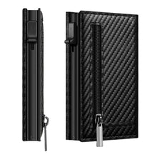 Men's Carbon Fiber Magnetic Card Clip PU Leather RFID Bank Card Bag Large Capacity Card Clip