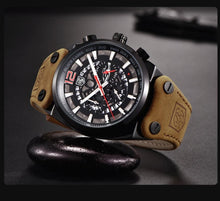 Mens Military Army Watches Analog Chronograph Watch Genuine Leather Strap Sports Casual Waterproof Male Quartz Wristwatch