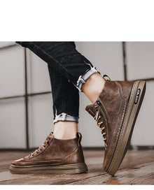 Men's Winter Cotton Shoes High-Top Fashion Casual Trend Boots Flat Shoes Winter Snow Boots Warm Ankle Booties Outdoor Work Shoes For Cold Weather Soft Comfortable Walking Brown Shoes