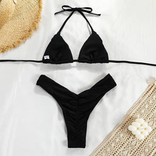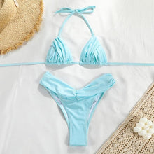 Micro Pleated Bikini Women Swimsuit Halter Bikini Set Triangle Swimwear Female Beach Wear Bathing Suit Two Piece Bikini Double Shoulder Straps Cute Swimsuit Triangle Bathing