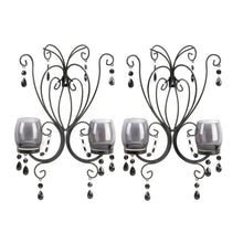 Dark and mysterious, this pair of wall sconces will turn candlelight into sultry ambiance. Each has two smoked glass candle cups set in a scrolling black metal frame that is...