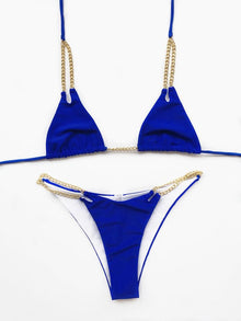 Mini Bikini Tie Dye Swimwear Women Metal Chain Patchwork Bathing suit Triangle Bikinis Women's Swimsuit Women Sparkle Glitter Swimwear Sequin Bikini Shiny String Bra Swimsuit Beach Wear
