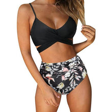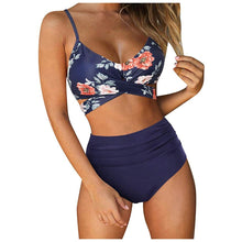 Modern Floral Bikini 2 Pieces Flower Print Bikini Set Women Crisscross High Waist String 2 Piece Bathing Suits High Waist Women's Swimsuit Shorts Solid Bikini Floral Summer Bikini Set