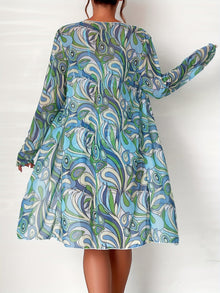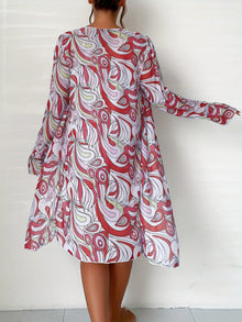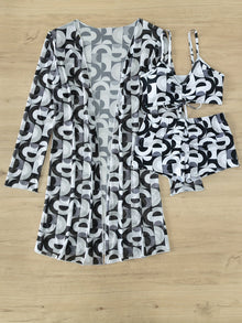 Modern Geo 3-Piece Bikini Set – Vibrant Geometric Print Fluttering Swimwear with V-Neck Top Boxer Shorts Bottoms and Long Sleeve Cover Shirt – Comfortable High-Stretch Women’s Beachwear for Pool & Summer Vacations