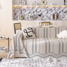 This sofa throw blanket features a geometric stripe pattern and a soft, smooth texture. The fabric is designed to be lightweight and breathable, providing a cool and comfortable surface. It can be used to cover and protect a couch or as a decorative accent piece in your living room.